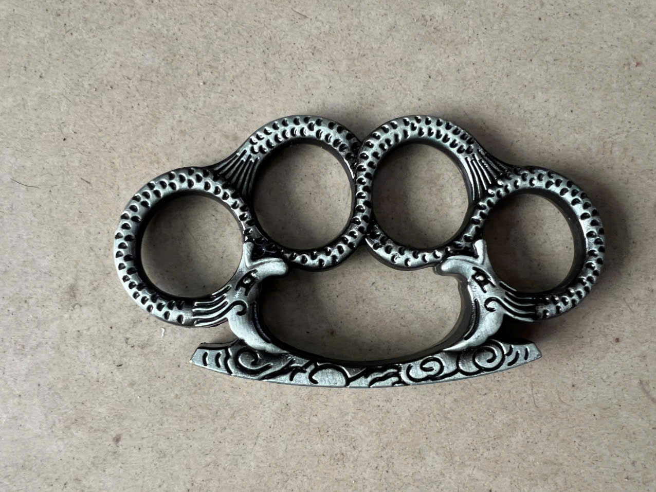 - Unikátní design: Tento model brass knuckles má detailní vzory, včetně jemných linií a dekorativních prvků, které dodávají produktu historický a umělecký nádech.