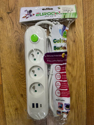 Prodlužovací kabel EUROGIA Color Series je praktické a bezpečné řešení pro každou domácnost i kancelář. Nabízí 3 klasické EU zásuvky a 2 USB porty, které umožňují napájet více zařízení současně – bez nutnosti používat další nabíječku.