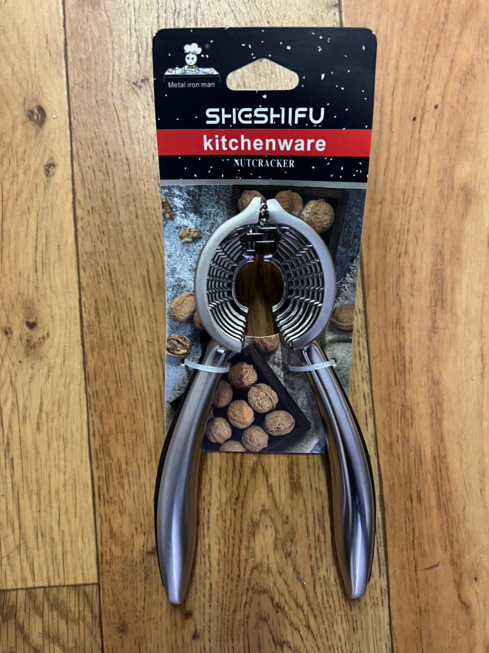 Kovový louskáček na ořechy SHESHIFU je pevný a ergonomicky navržený nástroj, který umožňuje snadné a rychlé rozlousknutí různých druhů ořechů. Díky robustní konstrukci a kvalitní slitině kovu je ideální pro každodenní používání v kuchyni.