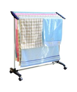 Multifunkční stojan na sušení prádla je praktickým řešením pro domácnosti s omezeným prostorem. Jeho kompaktní a skládací design umožňuje jednoduché přenášení a snadné uložení, když se nepoužívá. Kovová konstrukce zajišťuje pevnost a stabilitu, zatímco promyšlené rozložení tyčí poskytuje dostatek místa pro sušení různých druhů textilií.