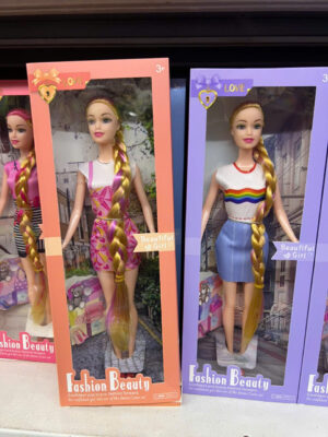 Vyniká extra dlouhým spleteným copem ve zlatých a růžových tónech, moderním oblečením a atraktivním balením.