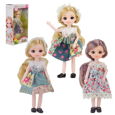 Panenka je oblečena do krásných květinových šatů s bílou halenkou, které jsou doplněny ozdobnými knoflíky ve tvaru medvídka. Tento outfit dodává panence romantický a příjemný vzhled. Součástí balení je také malý doplněk, který podporuje vytváření příběhů a fantazijních situací.