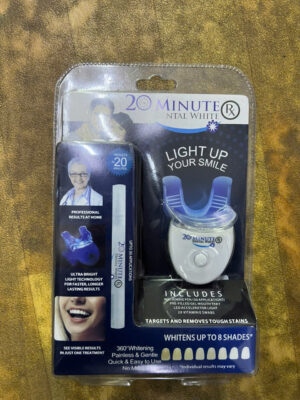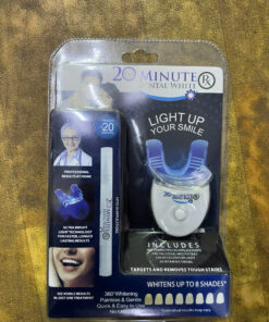 Sada 20 Minute Dental White je určena pro rychlé a efektivní domácí bělení zubů. Kombinuje bělicí gel a LED světlo, které napomáhá k rychlejšímu a hlubšímu odstranění skvrn od kávy, čaje, vína nebo kouření. Výsledky jsou viditelné již po jedné aplikaci.