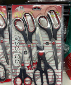 Ergonomické rukojeti s červenými protiskluzovými prvky poskytují pevný úchop a snižují únavu při dlouhodobém používání. Díky různým velikostem nůžek můžete snadno stříhat papír, textil, obaly, látky, nitě i drobné materiály.