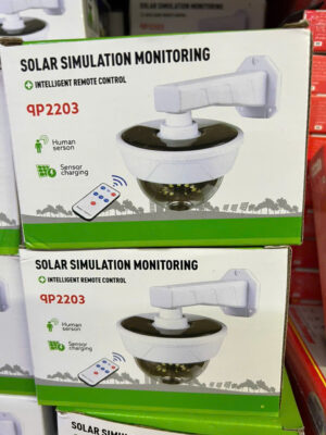 Solární simulační kamera QP2203 je chytré a úsporné řešení pro zvýšení bezpečnosti vašeho domu, kanceláře nebo zahrady bez nutnosti instalace skutečného monitorovacího systému. Kamera je falešná, ale díky realistickému designu, pohybovému senzoru a LED světlu dokonale imituje skutečné bezpečnostní zařízení.