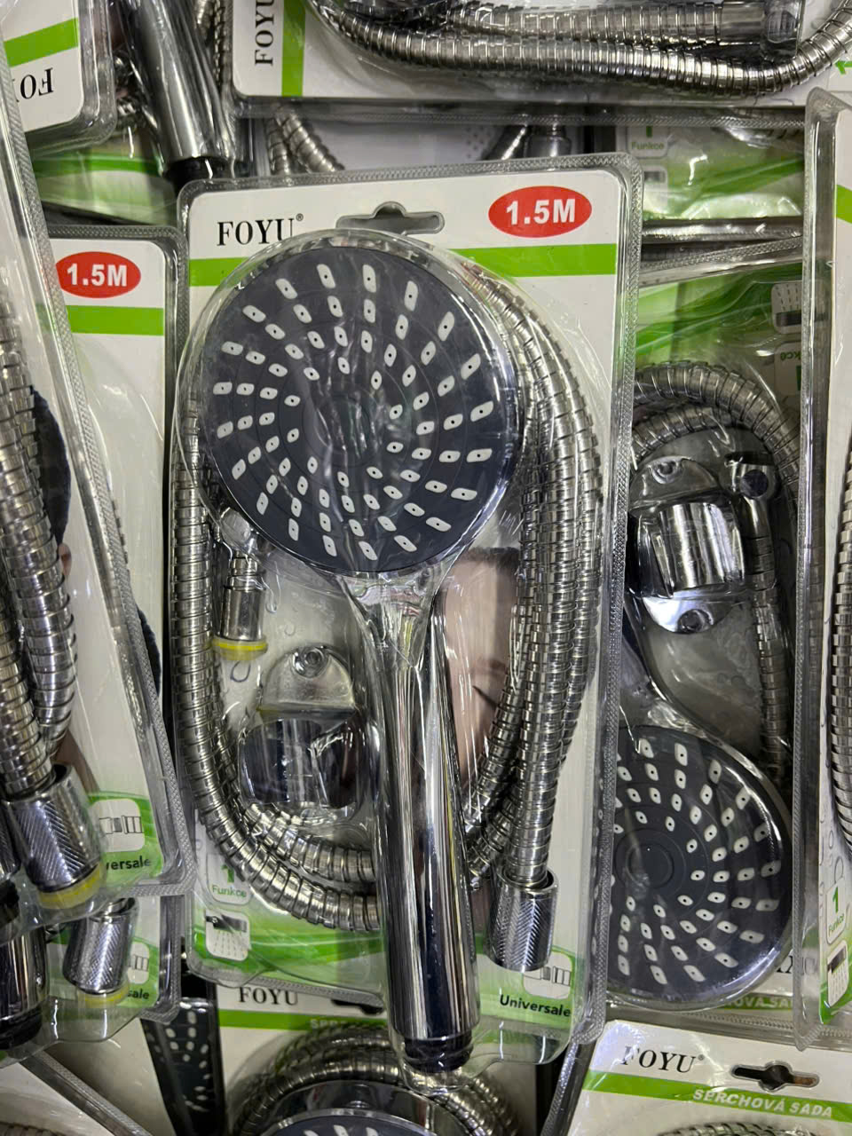 Sprchová sada FOYU o délce 1,5 metru je kompletní řešení pro pohodlné sprchování. Obsahuje moderní ruční sprchovou hlavici s vícebodovým systémem trysek a odolnou kovovou hadicí, která poskytuje vysokou flexibilitu i dlouhou životnost. Sada je vhodná pro všechny běžné sprchové baterie díky univerzálnímu závitu, takže instalace je rychlá a bezproblémová.